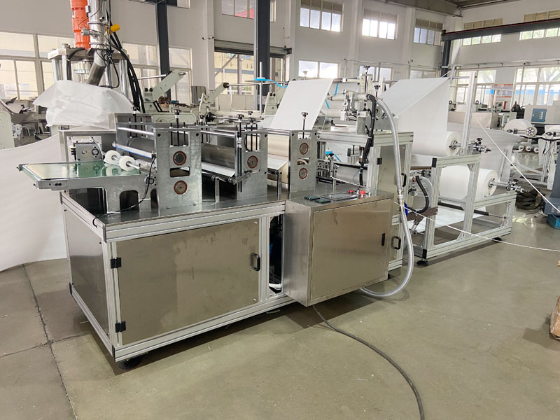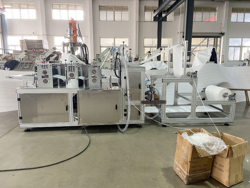 本公司自主研發一次性無紡布靴套機 松緊式靴套的專用機械。該機為不銹鋼結構,獨立電器控制箱,只需一人操作,從送料至成型、計數、收集完成自動化控制,最高每分鐘生產90只